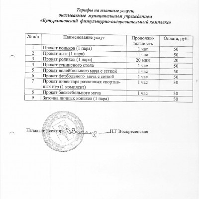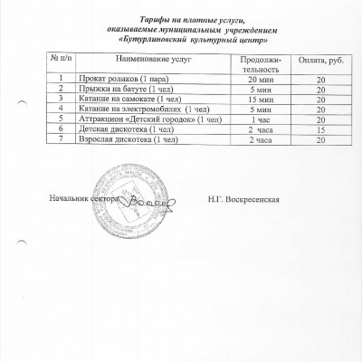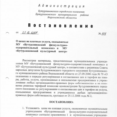 Постановление о ценах на платные услуги МКУ БКЦ от 25.12.2008 г.