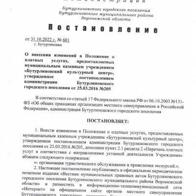 Постановление о внесение изменений в положение о платных услугах от 31.10.2022 г.