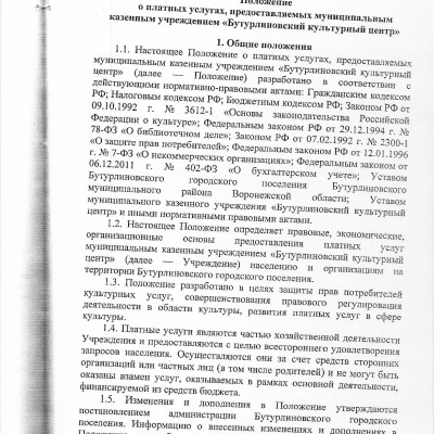 Постановление об утверждении Положение о платных услугах от 25.03.2016 г.