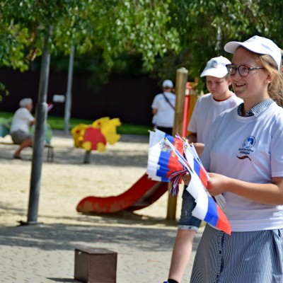 Сотрудники БКЦ провели для воспитанников детского сада №1 игровую акцию в канун Дня Российского флага. Дети участвовали в играх и конкурсе рисунков на асфальте. Также в это время акцию к празднику проводили волонтёры победы Бутурлиновки. Они подарили детям и всем участникам игровой акции символику праздника - флажки и ленточки.