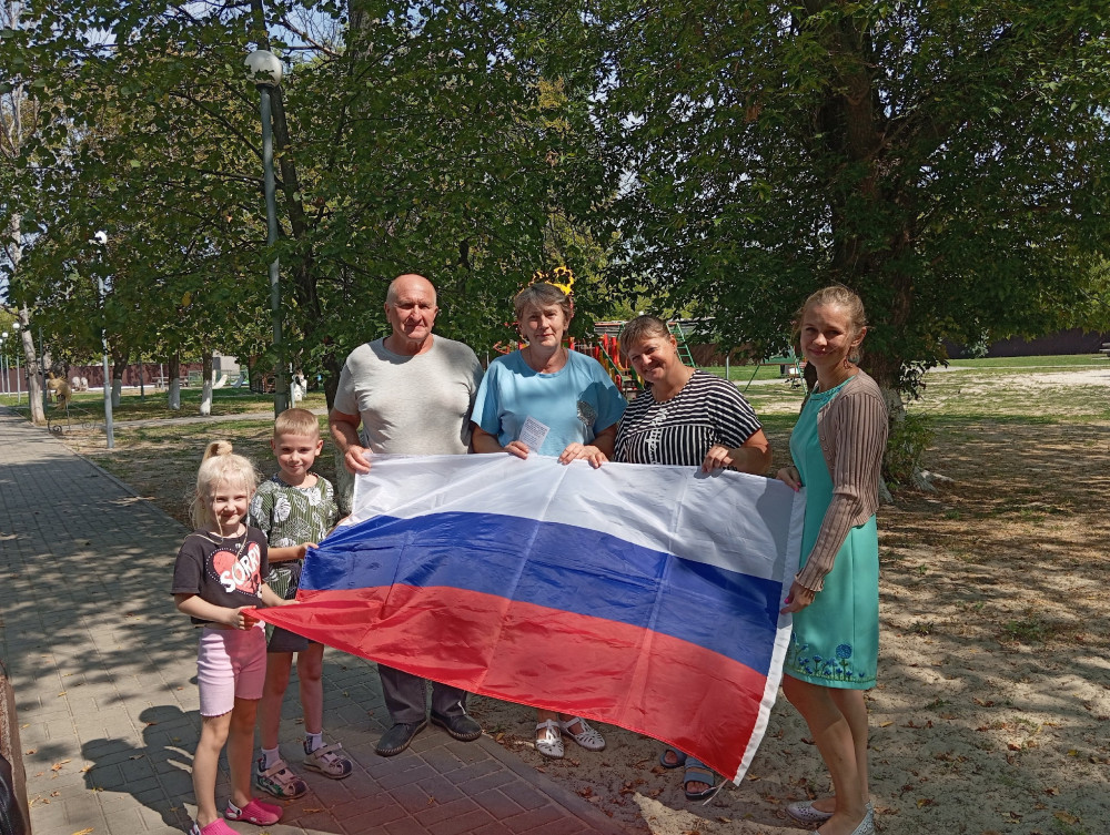 Гордо реет флаг Российский Над моею головой, Самый радостный и близкий. Не хочу иметь другой!