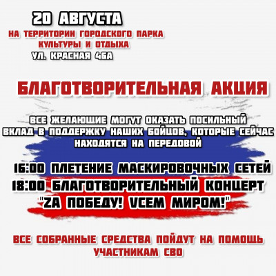 Приглашаем вас принять участие в плетении маскировочных сетей и стать зрителем эстрадного благотворительного концерта.