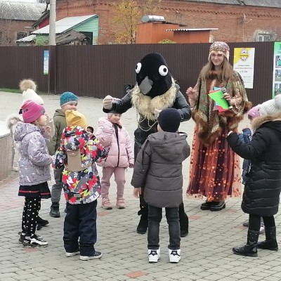 Ведущие праздника - "Осень" и "Сорока" - рассказали о перелетных птицах, играли с детьми в подвижные игры «Накорми птенца», танцевали. А в конце разложили корм в кормушки для птичек.