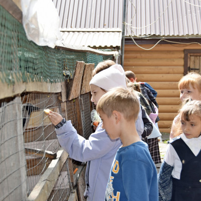 Дети покормили животных контактного зоопарка, прошли с гидом по экологической тропе, осмотрев арт-объекты.