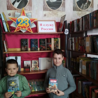Ко Дню защитника Отечества в библиотеке «БКЦ» оформлена выставка «Я служу России». Выставку посетили школьники.