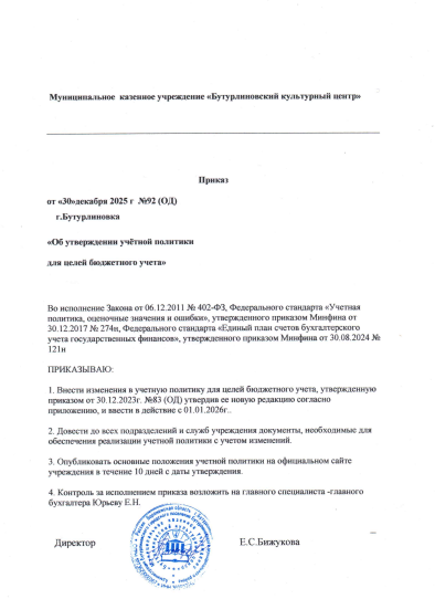 • Учётная политика МКУ "Бутурлиновский культурный центр" 2026 г.